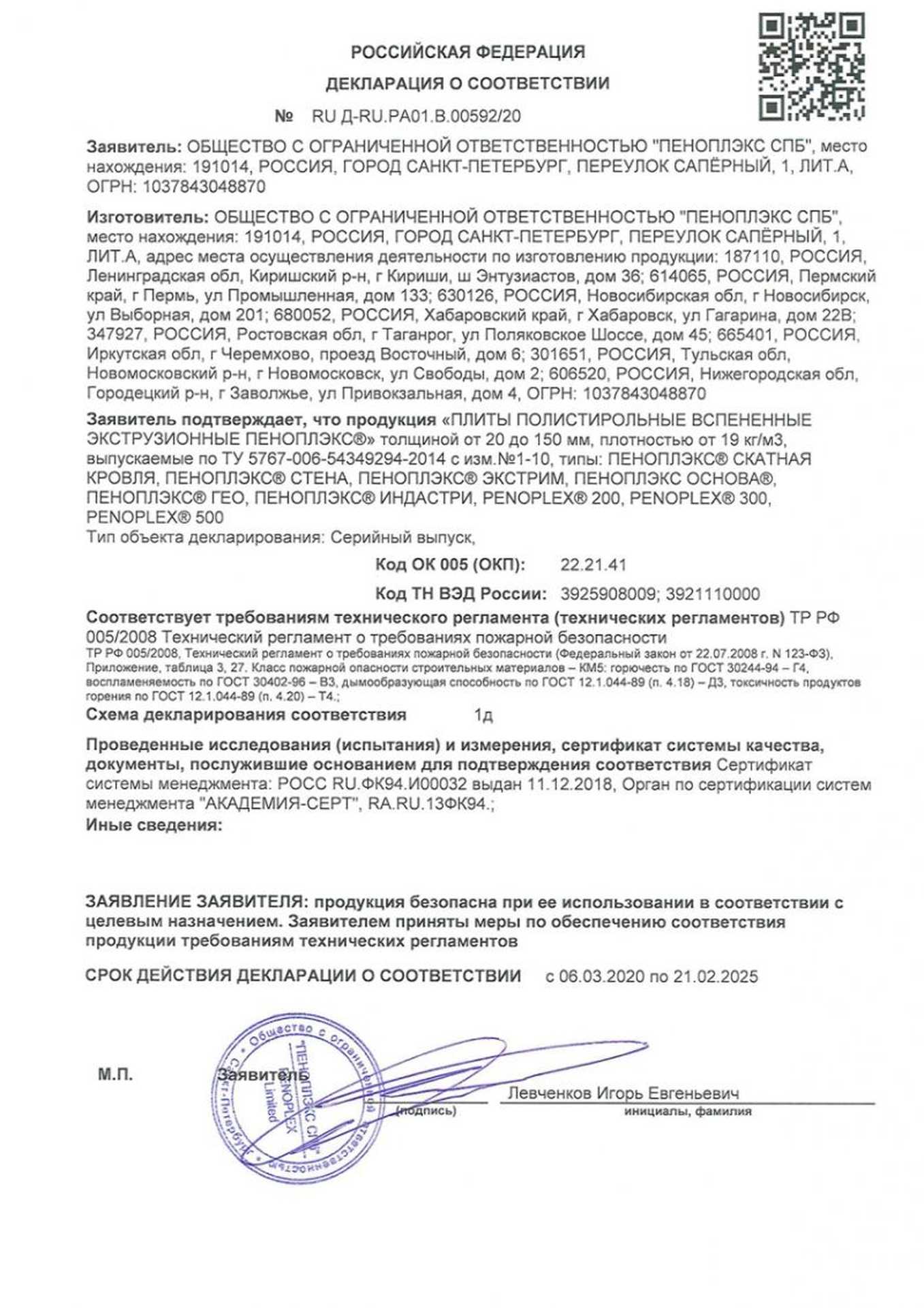 По результатам санитарно-эпидемиологической экспертизы продукция ПЛИТЫ ПОЛИСТИРОЛЬНЫЕ ВСПЕНЕННЫЕ ЭКСТРУЗИОННЫЕ ПЕНОПЛЭКС, произведенные по ТУ 5767-006-56925804-2007 и ТУ 5767-006-54349294-2014, соответствуют установленным требованиям.